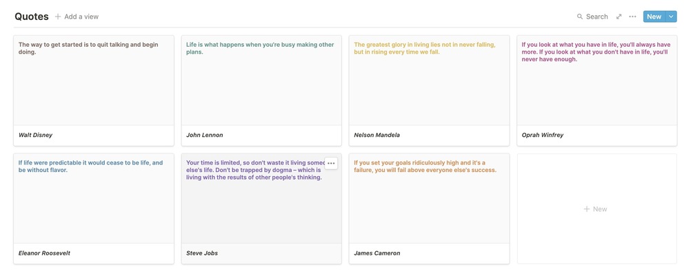 Want a clear and beautiful way to display quotes on your Notion pages? Grab this database that's formatted perfectly to display your greatest inspirations and drop it into your workspace.
